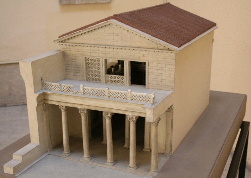 Reconstituição (maquete) da Biblioteca Úlpia (112-114), localizada no Fórum de Trajano, em Roma.