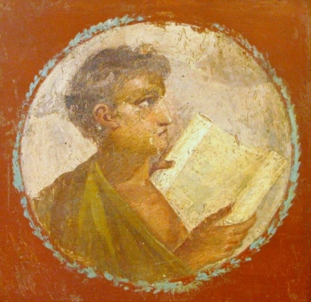 Definitivamente, o Império Romano adquirira o gosto pela leitura. Ademais, em todos os rincões imperiais existiam, além das públicas, bibliotecas privadas. Um magnífico tipo de biblioteca privada romana foi a da Vila dos Papiros, em Herculano – Villa dei Pisoni, em italiano. Ela foi a única sobrevivente à trágica erupção do Vesúvio, que enterrou as cidades de Pompéia e Herculano no ano 79 (Sider 2005). A Vila dos Papiros foi preservada sob as cinzas com mais de mil e oitocentos rolos de papiro! Luxuosíssima, ela também abrigava a maior coleção de esculturas de bronze descoberta em um único contexto – pelo menos oitenta, de magnífica qualidade (Bieber 1961, pp. 106-107). É provável que seu proprietário fosse Lúcio Calpúrnio Pisão Cesonino (c.105-43 a.C.), sogro de Júlio César (101-44 a.C.). Definitivamente filosófica, sua biblioteca era para seu uso particular – assim como nas bibliotecas públicas, havia nela uma seção grega (de tratados epicuristas) e outra latina (de escritos contemporâneos) (Cavallo 1998, p. 75).