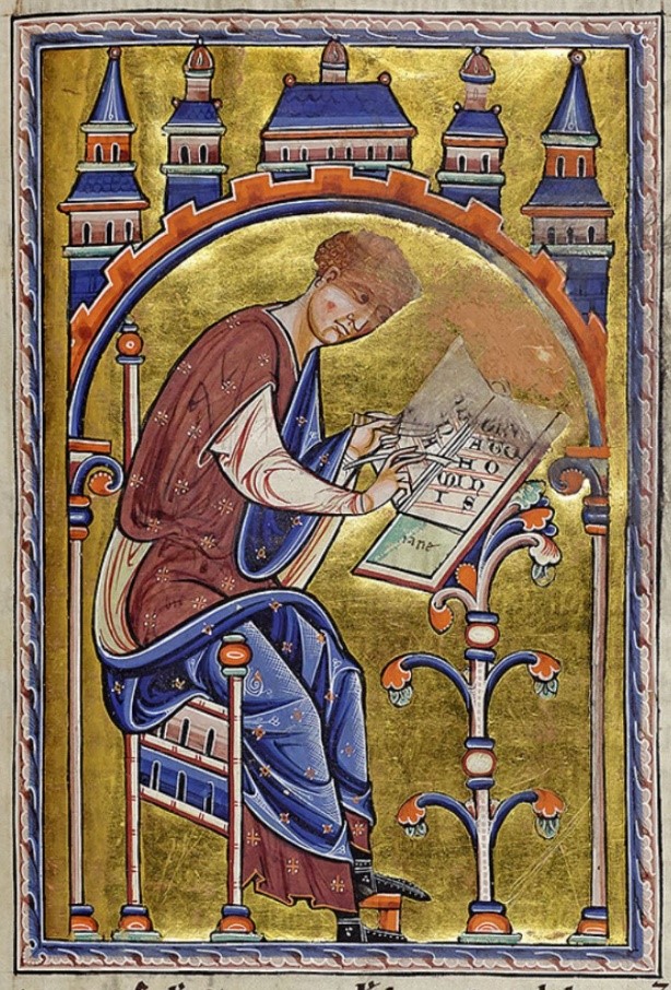 O imaginário que se formou ao longo de milênios em torno do sábio e seus livros disseminou uma cultura visual com figuras solitárias escrevendo ou lendo, à frente de seu armarium, repleto de códices. A imagem 7 é uma iluminura inglesa do século VIII que representa Esdras, o Escriba, sacerdote e líder do povo judeu, que viveu no séc. V a.C. O Livro de Esdras, do Antigo Testamento bíblico (Esdras 7:6), mostra que o monarca babilônico Artaxerxes I (497-427 a.C.) reconheceu o saber do escriba: “Esdras subiu de Babilônia. Era um escriba versado na Lei de Moisés, dada por Iahweh, o Deus de Israel. Como a mão de Iahweh, seu Deus, estava sobre ele, o rei lhe concedeu tudo o que pediu” (Bíblia 2013, p. 635).