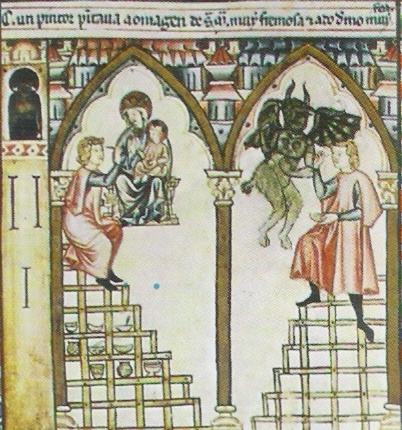Cantiga 74: Como Santa Maria guareceu o pintor que o demo quisera matar porque o pintava feo.[44]
