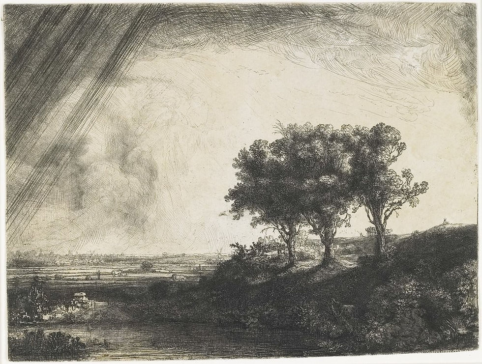 Rembrandt, 1643. As três árvores. Água forte, ponta seca e buril.