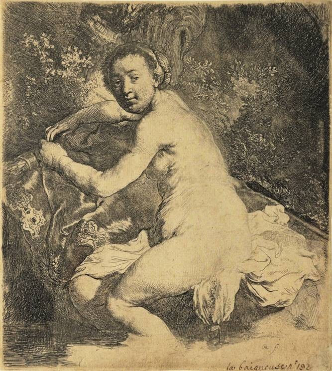 Rembrandt, 1631. Diana banhando-se, água forte, estado único, 17,8 x 15,9 cm.